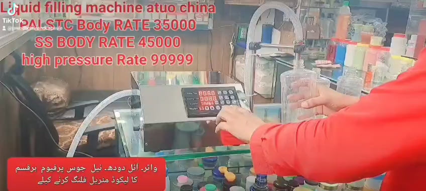 oile , water , milk , Juice . Rose water, Serum,  Neel ,& all liquid material water bass feeling machine 1 ml to 10000 ml capacity adjustable machine 12 volt machine