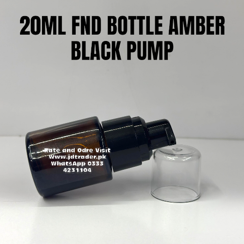 20ML FND GLASS BOTTLE AMBER BLACK PUMP